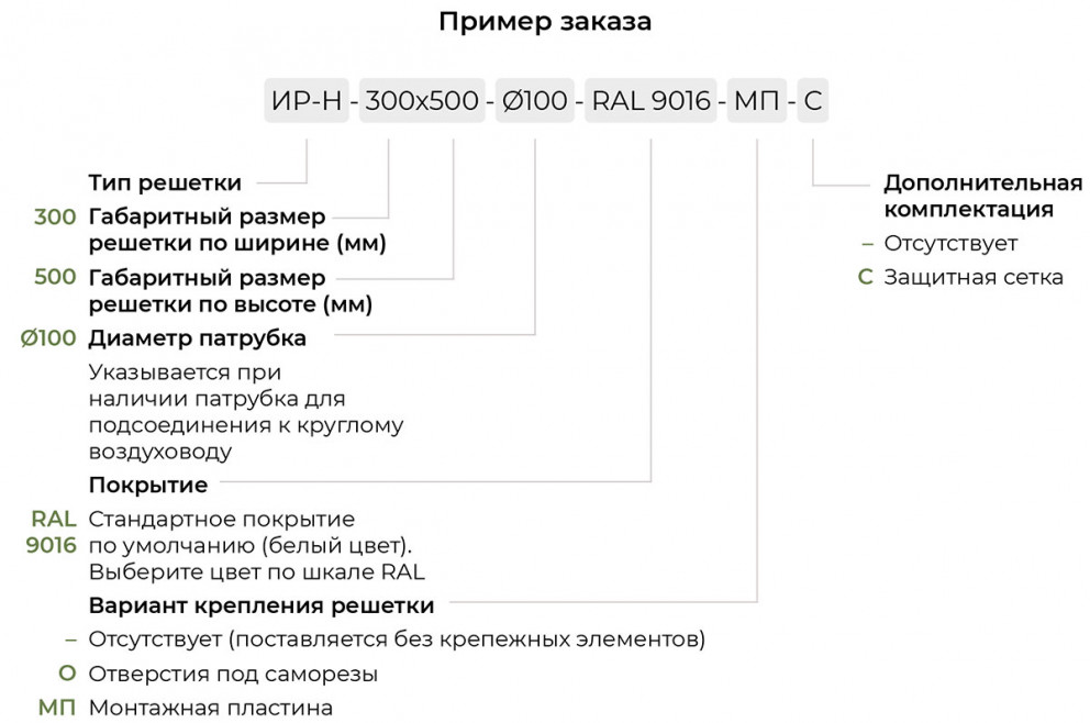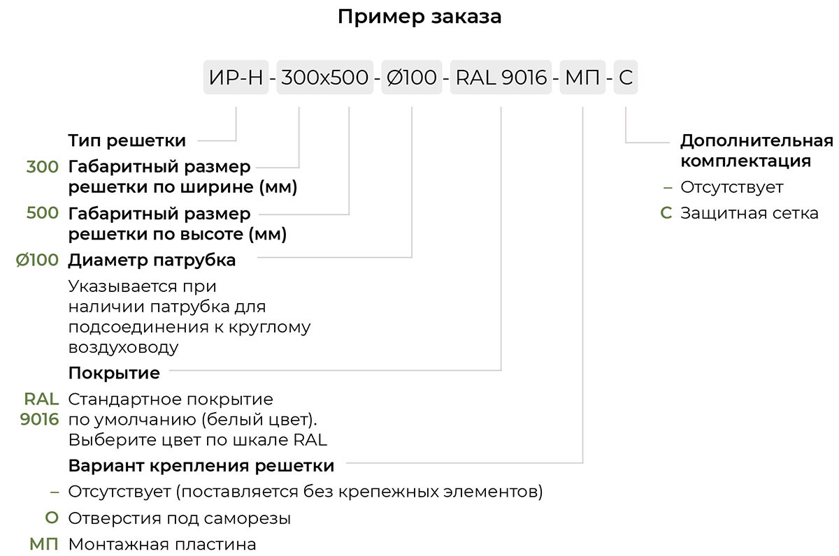 Возможно изготовление накладной решетки ИР-Н с патрубком нужного диаметра для подключения к круглому воздуховоду. Патрубок также изготавливается из алюминиевого профиля и по умолчанию окрашивается в цвет самой решетки согласно каталогу цветов RAL.