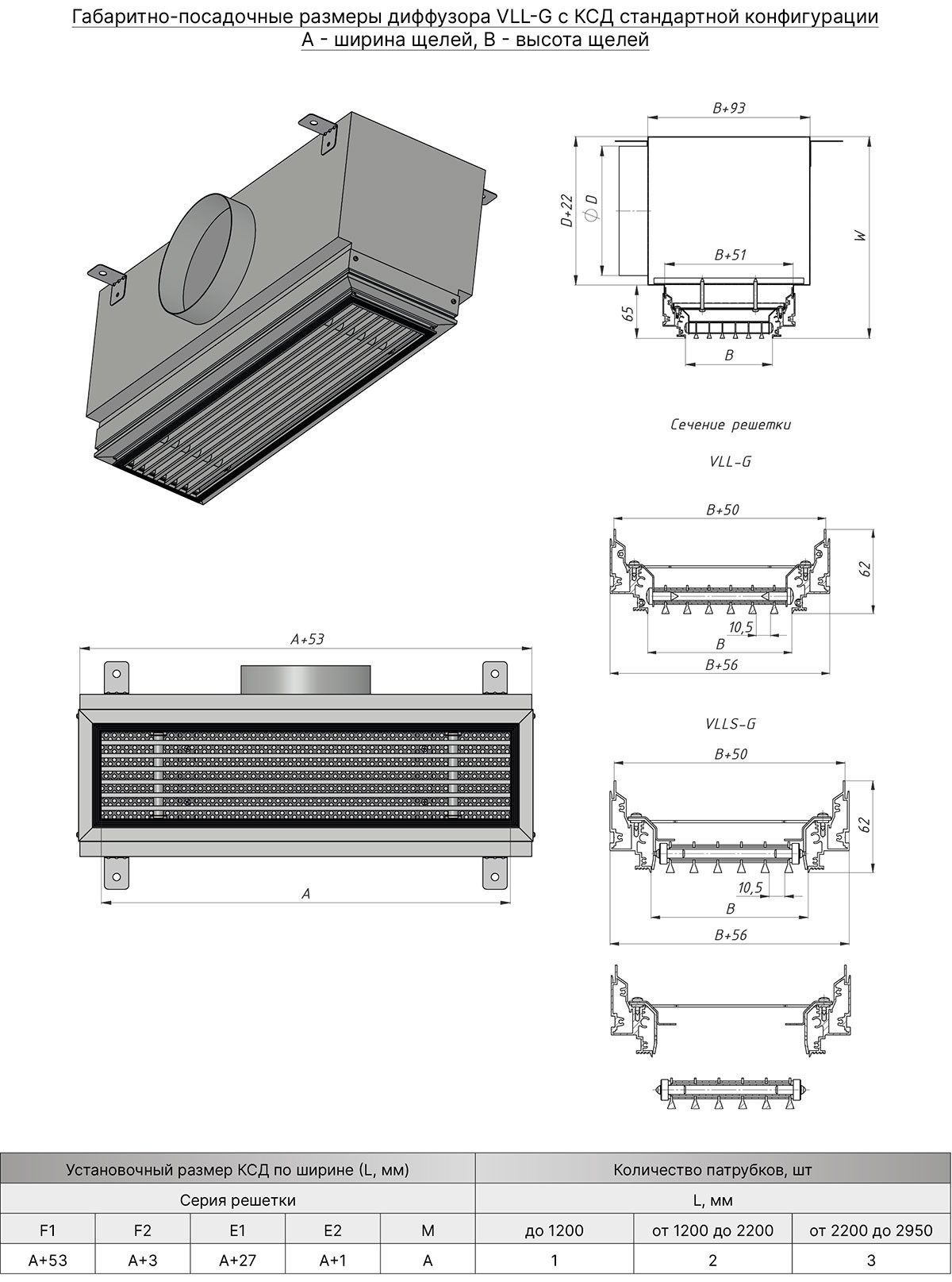 любой размер с шагом 1 мм (минимальный – 200х100 мм, максимальный для VLL-G – 2000х1000 мм, для VLLS-G – 2000х500). - возможна дополнительная комплектация выравнивателем воздуха.