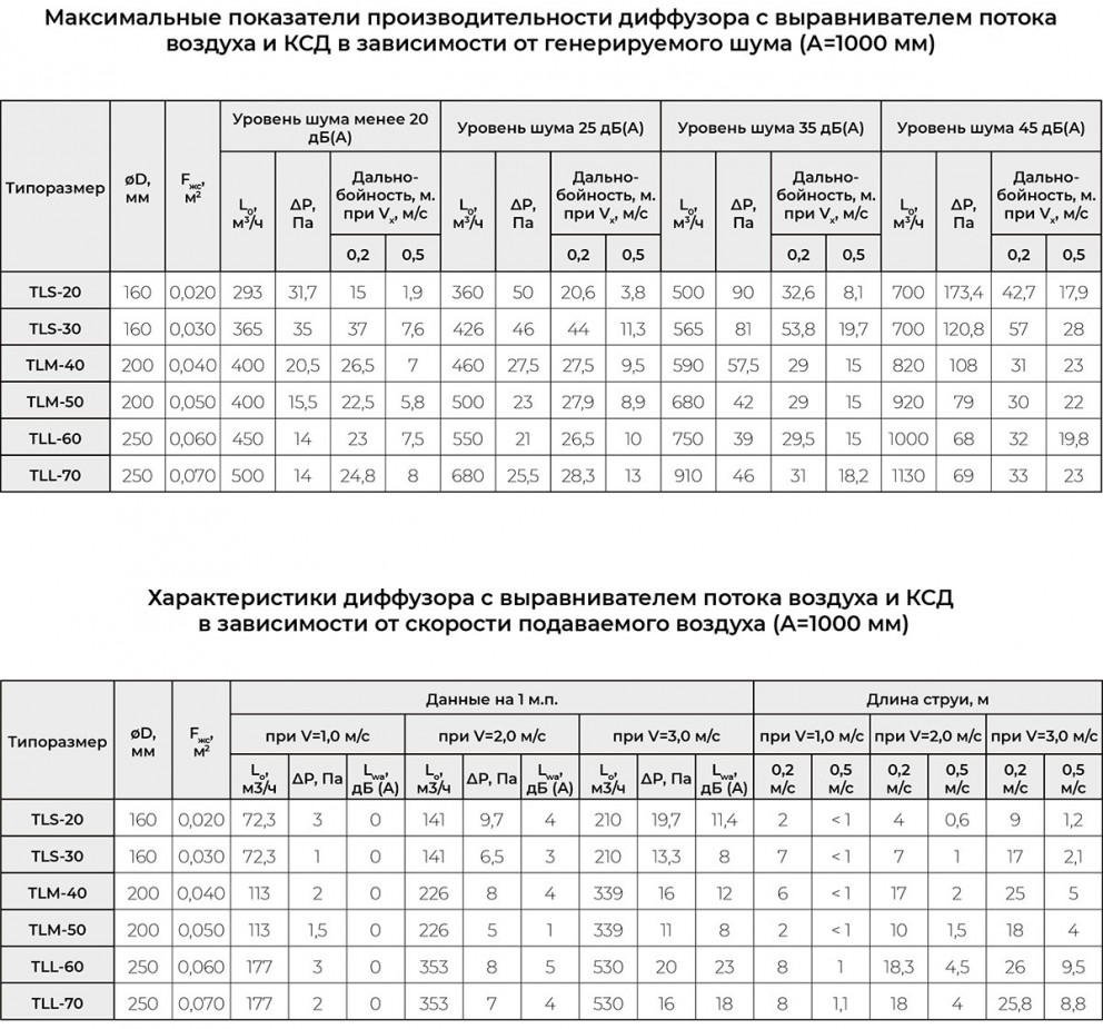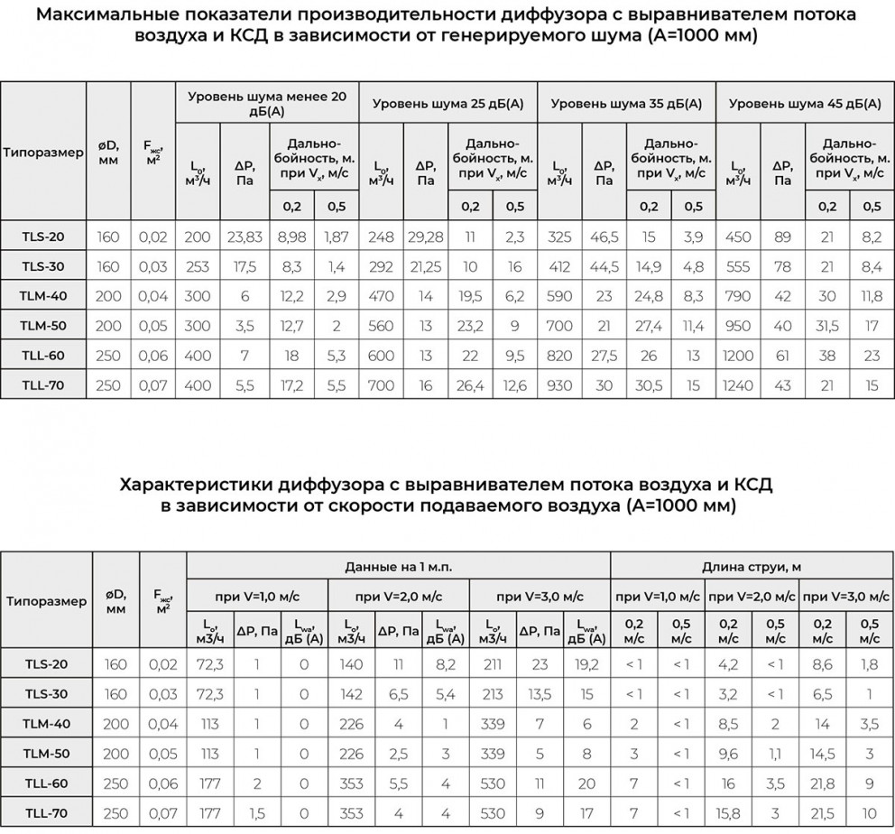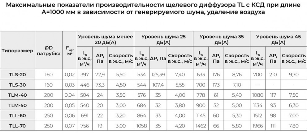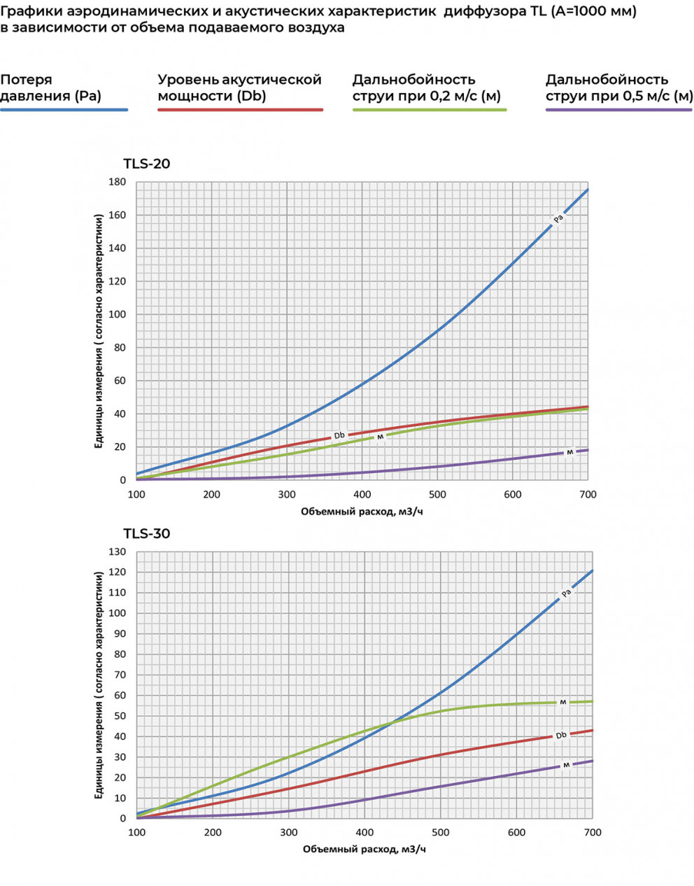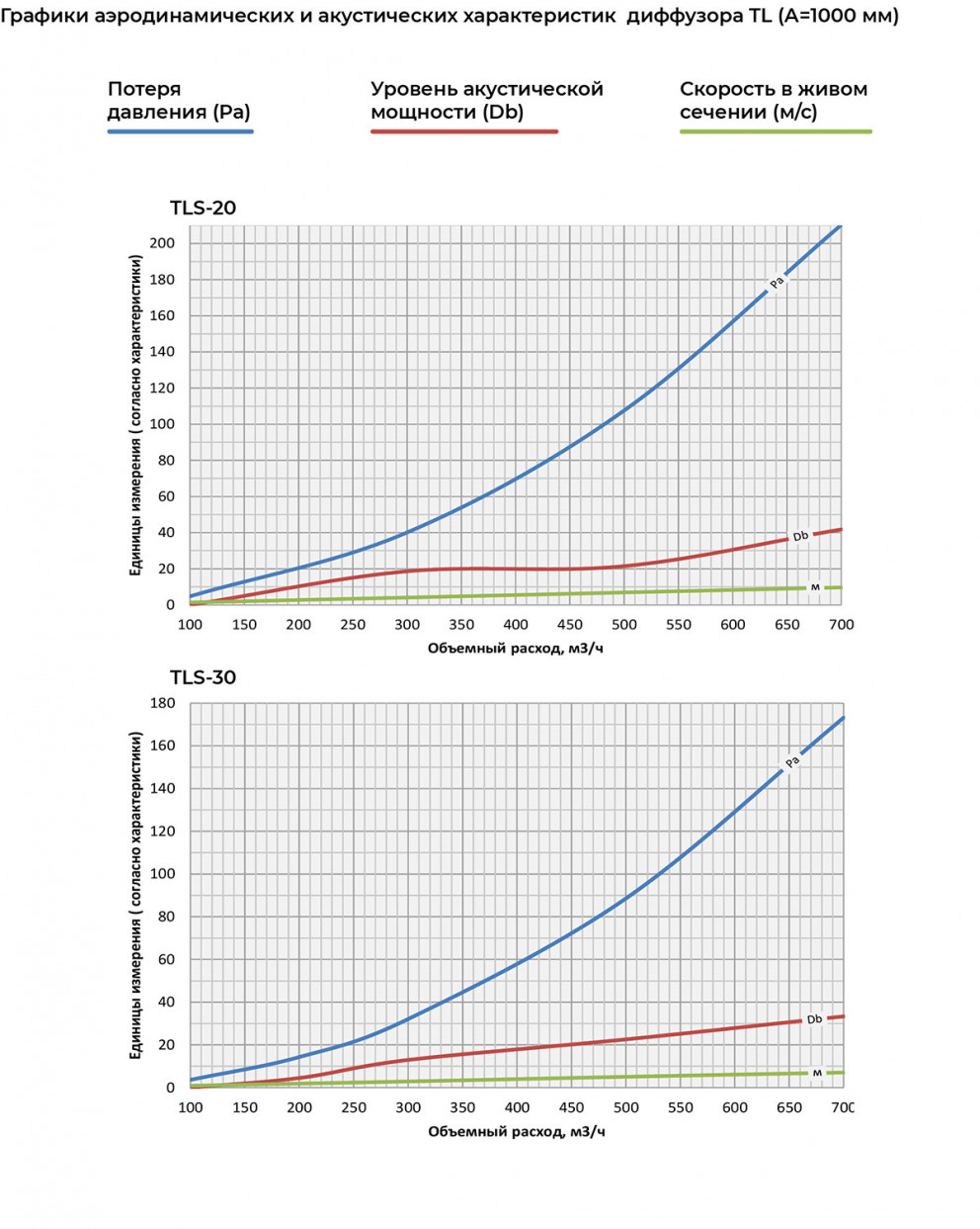 На примере диффузора TLM-20/1000 при скорости подачи воздуха 1 м/с
